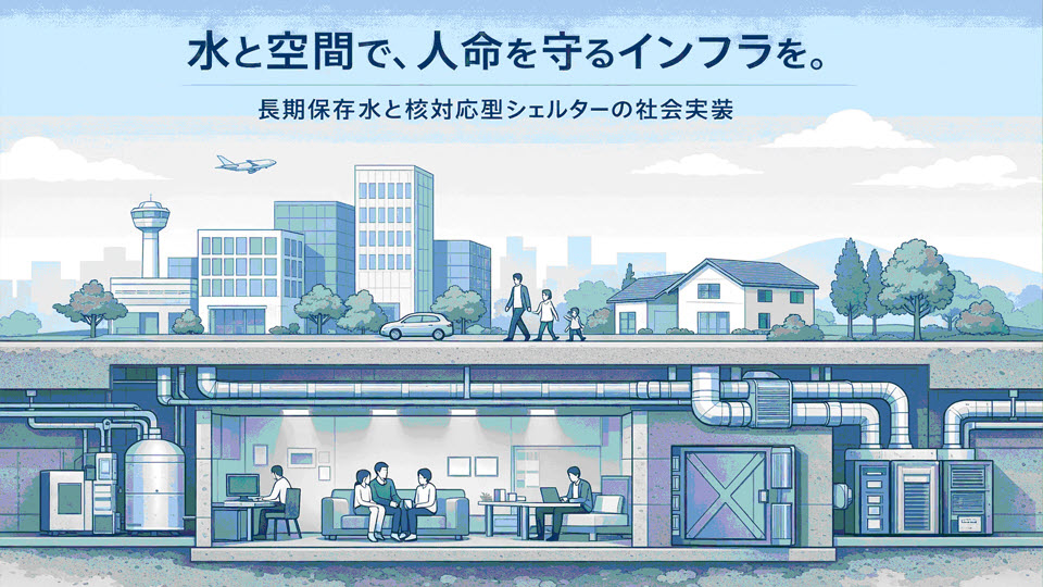 一般社団法人シオンワード21は、「水と空間で、人命を守るインフラを社会に実装する」ことを使命として設立されました。 災害や有事は、誰もが望まない出来事でありながら、現実として起こり得るものです。その現実に対し、精神論や一時的な備えではなく、実際に機能し、継続可能な仕組みを整えることが、今の社会には求められていると考えています。 当法人では、防災・非常時に不可欠な長期保存水の供給と、核・有事対応を想定したシェルター施設の整備・リース提供という二つの事業を通じ、平時から有事まで人命と生活を支える基盤づくりに取り組んでいます。 拠点である千葉県芝山町の立地特性を活かし、地域や関係機関と連携しながら、防災を特別なものではなく、社会の標準として根付かせていくこと。それが、私たちシオンワード21の果たすべき役割であり、責任であると考えています。